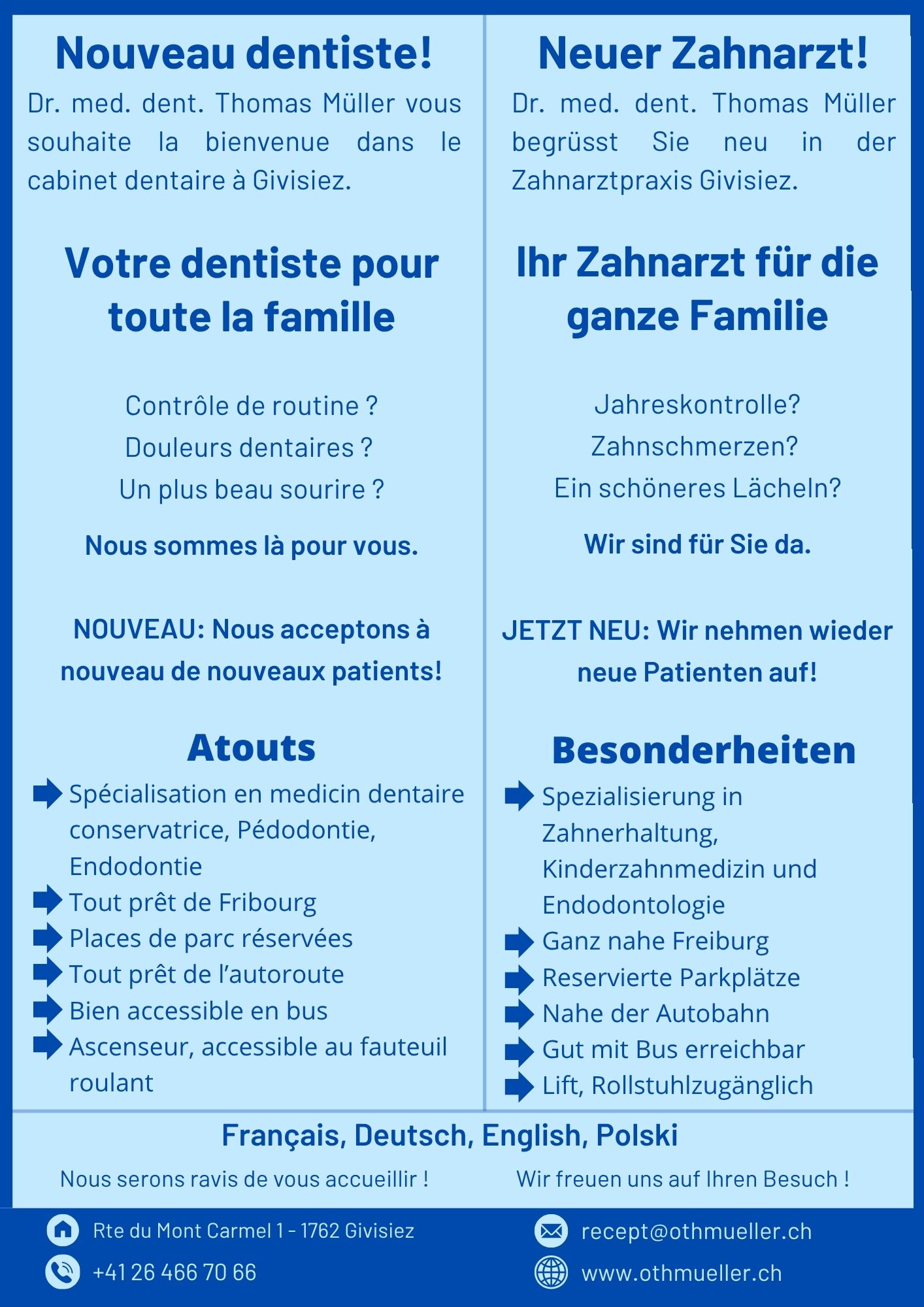 Otto Th. MüllerEidg. Dipl. Zahnarzt Tel.: 026 466 70 66 E-Mail: recept@othmueller.ch |